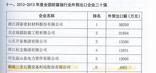 三圣成為行業(yè)內(nèi)同時榮登 “防腐蝕行業(yè)二十強(qiáng)”、“非金屬壓力容器企業(yè)二十強(qiáng)”、“防腐蝕行業(yè)外貿(mào)出口二十強(qiáng)”三大榜單的企業(yè)