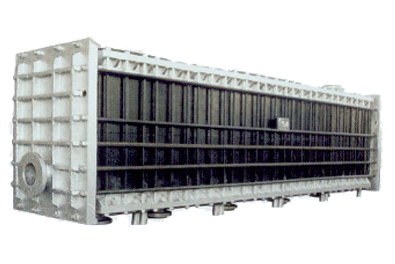 新型矩型塊孔自流式偏鈦酸石墨冷卻器由矩型石墨封頭、石墨換熱塊及其間的密封墊片等迭裝組成,因換熱塊僅承受壓力并為整體結(jié)構(gòu),無膠結(jié)縫,因而結(jié)構(gòu)強(qiáng)度較高,抗沖擊性良好。水封側(cè)板為鑄鐵板,檢修裝拆簡(jiǎn)便,也可制成雙向防腐結(jié)構(gòu),該設(shè)備物料單塊一流程,冷卻水側(cè)為1-4流程。