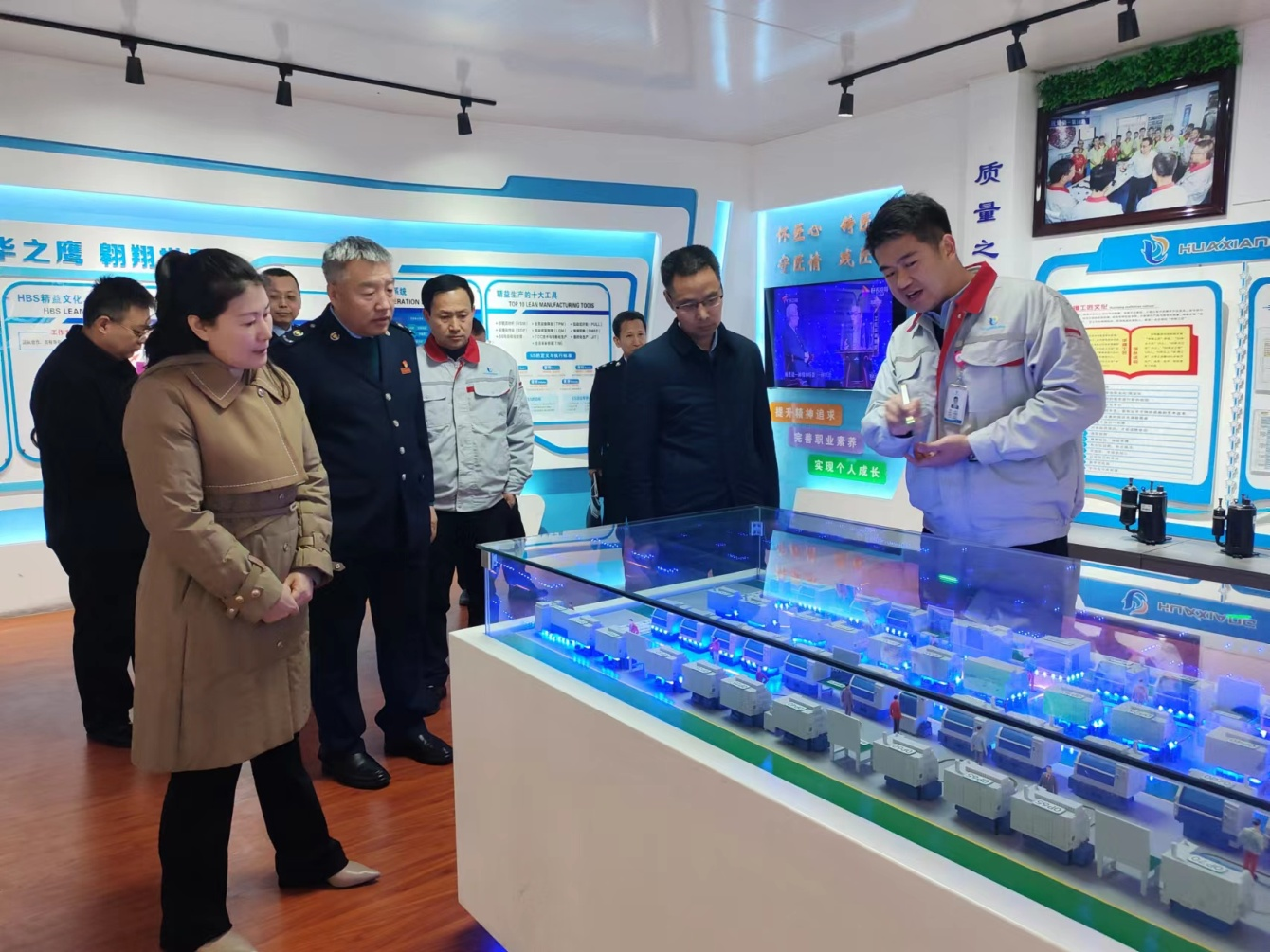 張鎖林一行首先對我司智能制造機加工各工廠進行了參觀,對華翔集團智能制造情況、企業(yè)發(fā)展、精益生產(chǎn)、產(chǎn)品類型、市場份額等情況,以及“三園建設(shè)”戰(zhàn)略規(guī)劃有了初步了解。在3D打印展廳,張鎖林對我司在3D打印領(lǐng)域取得的成就表示了高度贊揚。